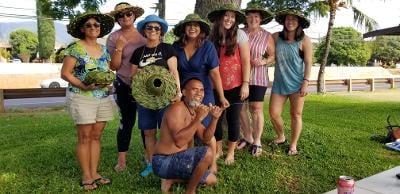 Interactive discussion and ongoing cultural demonstrations using Canoe Plants and Practices of the Pacific with the backdrop of the lecturers’ outreach program coming from what used to be their home in Lahaina, Maui. U’i Kahue & Mario Siatris